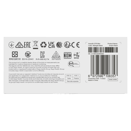 Lista Prezzi - Scheda del prodotto Amazfit GTR Mini 3,25 cm (1.28'') AMOLED 42 mm Digitale 416 x 416 Pixel Touch screen Nero, Argento GPS (satellitare)