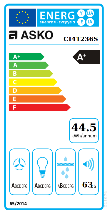Asko CI 41236 S, 930 m³/h, Aspirante, A, A, B, 63 dB