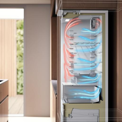 I sensori intelligenti monitorano attentamente il modo in cui utilizzi il frigorifero e regolano l'effetto di raffreddamento. Il frigorifero abbassa automaticamente la temperatura prima dei periodi di uso frequente, evitando che gli alimenti si scaldino e mantenendo così il cibo fresco fino al 20% più a lungo.