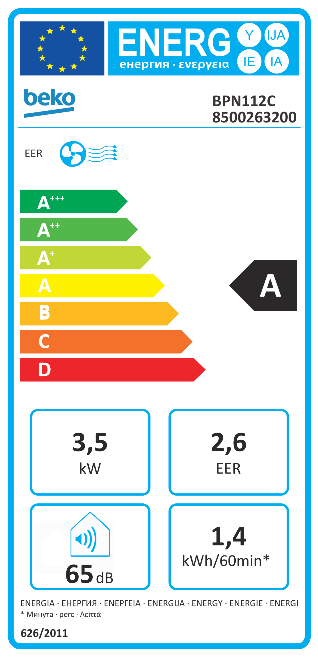 Lista Prezzi - Scheda del prodotto Beko BPN112C: Climatizzatore Portatile, 12000 Btu/h, Raffrescamento, Classe A