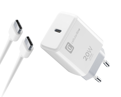 Cellularline Charger Kit 20W - For iPhone 15 Series Charger Kit 20W For iPhone 15 Series formato da un caricabatteria USB-C 20W + un cavo USB-C