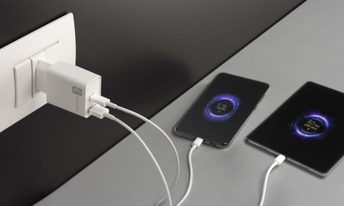 MULTIPORT CHARGER PD 20W è il caricabatterie di Cellularline che, grazie alle sue due porte, consente di caricare contemporaneamente due dispositivi con una sola presa. La porta USB-C eroga 20W PD, la porta USB-A eroga 18W QC. Quando utilizzate in contemporanea le porte erogano 15W. MULTIPORT CHARGER PD 20W è il caricabatterie multiporta ideale per tutti gli smartphones, grazie alla sua carica fino a 20W Power Delivery.