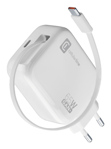 Lista Prezzi - Scheda del prodotto Cellularline Retractable Power 65W Caricabatterie da rete 65W con cavo retrattile USB-C e porta USB-C
