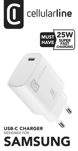 SUPER FAST CHARGER KIT PD 25W carica in tutta sicurezza qualsiasi dispositivo Samsung con porta USB-C, garantendo la carica più veloce per gli smartphone e i tablet con tecnologia di carica Power Delivery Super Fast Charging 25W. Grazie al packaging estremamente compatto, è possibile presidiare touchpoint diversi dal banco telefonia, in logica di cross-selling.