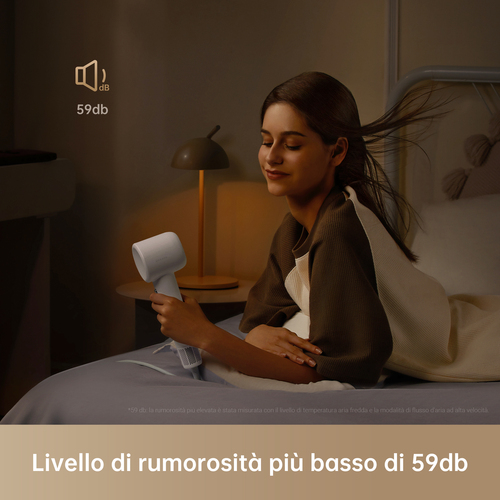 Il cuore dell'asciugacapelli è il suo motore in lega di alluminio, che sottolinea l'efficienza e la durabilità del dispositivo. L'integrazione di un algoritmo avanzato per il controllo della temperatura contribuisce a una gestione ottimale del calore, con una misurazione 100 volte al secondo per assicurare una temperatura costante e sicura di 57°C. Questo approccio protegge i capelli dalla secchezza, dalla fragilità e dalla rottura, garantendo al tempo stesso un'asciugatura efficace.