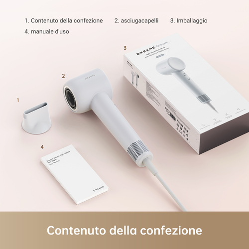 Il design intuitivo dell'asciugacapelli, con il suo indicatore LED colorato e pulsanti facilmente accessibili, rende l'uso del dispositivo semplice e piacevole. Questi elementi, combinati con le sue prestazioni eccezionali e la protezione offerta ai capelli, fanno del Dreame Hair Gleam un'opzione attraente per chi cerca un'asciugatura rapida, sicura e versatile.