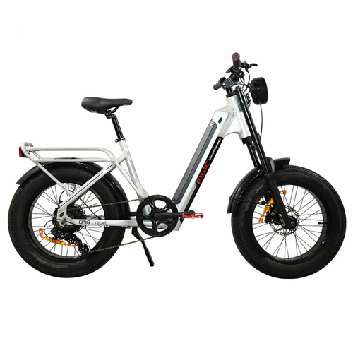 Grazie ai suoi pneumatici FAT da 20”x4” All Terrain, l’e-bike Rebel ha una presa stabile e una trazione ottimale anche su superfici irregolari, mentre l’attacco del manubrio e la piega in alluminio over offrono una posizione di guida confortevole ed ergonomicamente corretta. Dotata di comandi Shimano M315 a 7 velocità, un deragliatore Shimano TY 300 e una ruota libera Shimano a 7 velocità, è capace di assicurare una transizione fluida tra le marce e una pedalata efficiente.