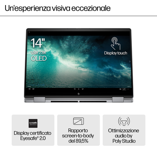Il laptop 2-in-1 HP Envy x360 da 14'' consente di aumentare la produttività[1], grazie alla tecnologia AI e al più recente processore AMD, che insieme ottimizzano la velocità di elaborazione e la durata della batteria. Il suo design 2-in-1 consente di passare in un attimo dalla modalità laptop a quella tablet. Questo PC laptop è stato realizzato con materiali riciclati ed è accompagnato da un imballaggio privo di plastica, per un impatto più sostenibile sul pianeta.