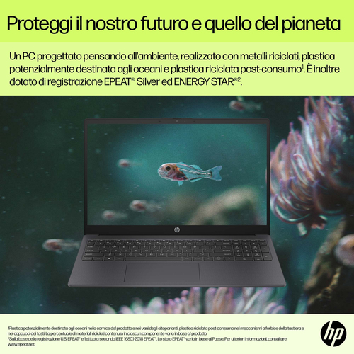 Grazie al laptop HP 15,6" la tua produttività salirà alle stelle con un potente processore Intel[1], ampio spazio di storage e un'efficiente scheda grafica, il tutto incorporato in un design elegante ed ecosostenibile. È realizzato con plastica potenzialmente destinata agli oceani e plastica riciclata post-consumo[2], per la massima produttività nel rispetto dell'ambiente.