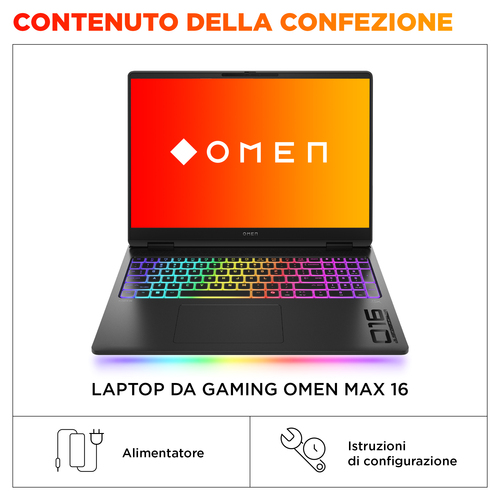 Lista Prezzi - Scheda del prodotto HP OMEN MAX Gaming 16-ah0011nl Intel Core Ultra 7 255HX Computer portatile 40,6 cm (16'') WQXGA 32 GB DDR5-SDRAM 1 TB SSD NVIDIA GeForce RTX 5070 Ti Wi-F