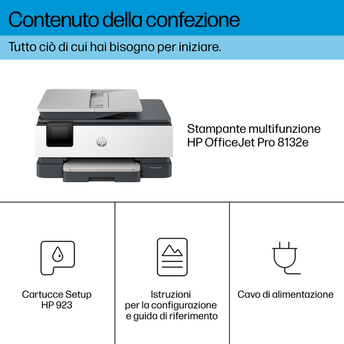 Stampante idonea a HP+. Scegli HP+ durante la procedura di configurazione della tua stampante per attivare tutti i vantaggi. HP+ richiede un account HP, una connessione a Internet continua e l'uso esclusivo delle cartucce di inchiostro Originali HP per tutta la durata di vita della stampante. Per maggiori informazioni consultare: http://www.hp.com/plus
