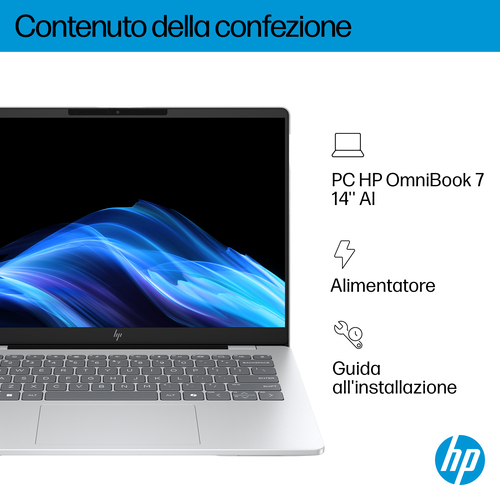 HP OmniBook 7 AI da 14" combina prestazioni elevate e multitasking fluido, grazie al processore Intel Core™ Ultra potenziato dall'AI[1]. Progettato per resistere alle sfide più difficili, è dotato di un display dai colori brillanti e di alta qualità, facile accesso all’AI con il tasto Copilot integrato[2] e videochiamate potenziate dall'AI per i professionisti in movimento.
