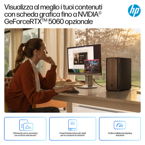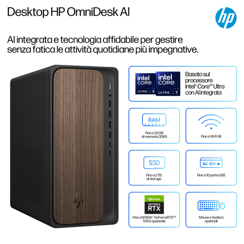 HP OmniDesk M03-0015nl AI Intel Core Ultra 5 225 16 GB DDR5-SDRAM 512 GB SSD Windows 11 Home Tower PC AI PC Nero, Legno €849.90 ENTRA