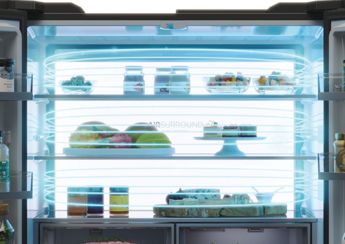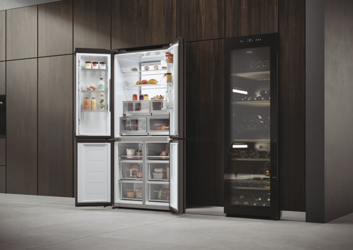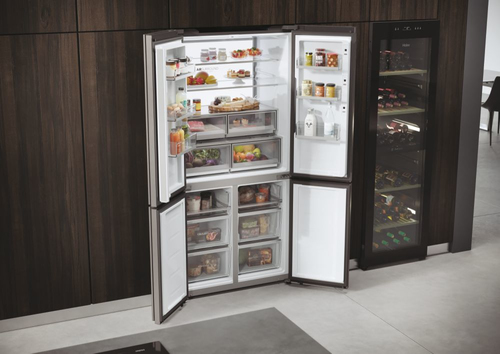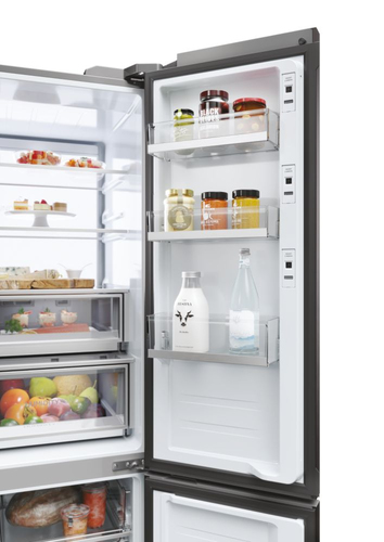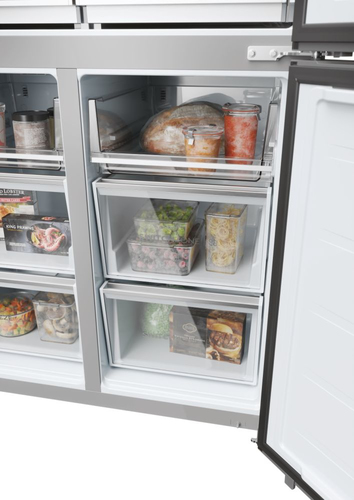 Il frigorifero a quattro porte Cube 90 Serie 9 con schermo integrato, largo 90 cm ed alto 190 cm, è equipaggiato con il meglio delle tecnologie di conservazione Fresher Techs di Haier. Lo straordinario schermo integrato permette di interagire con il frigorifero multidoor Cube 90 Series 9 avendo sempre una finestra sul mondo, grazie alla connessione web, e di godere di molte funzioni integrate grazie all'app hOn.