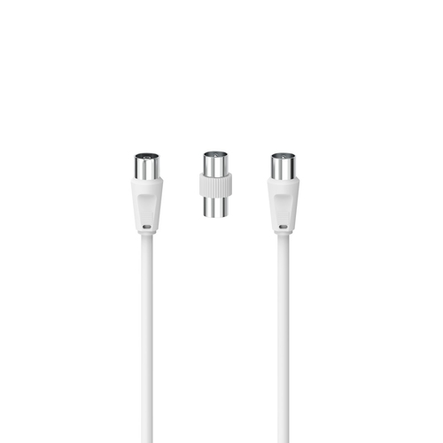 Hama Cavo antenna M/F con adattatore M/M, 1,5 metri, 75 dB, bianco, 1,5 m, Coassiale, Coassiale, Bianco