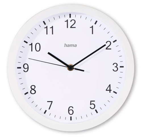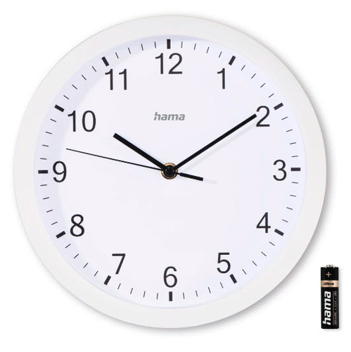 Hama Elba, Parete, Orologio al quarzo, Rotondo, Bianco, Plastica, Vetro