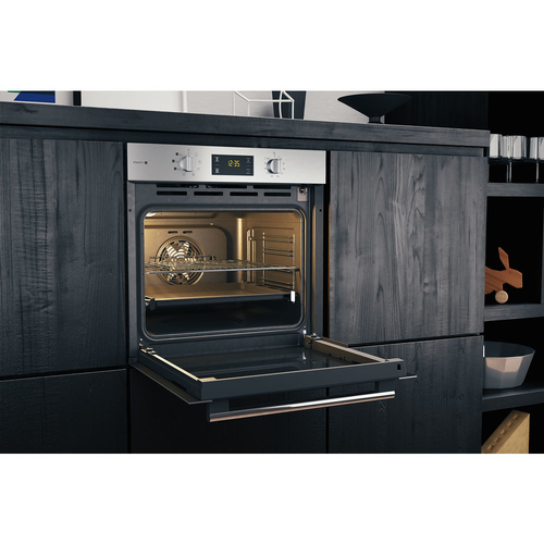 Caratteristiche di questo forno da incasso Hotpoint: tecnologia elettrica avanzata per cucinare risparmiando energia.