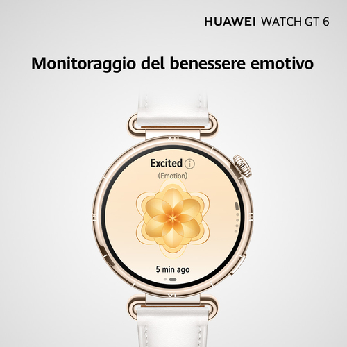 Scopri HUAWEI WATCH GT6 46mm, lo smartwatch che combina innovazione tecnologica, design raffinato e funzioni evolute per la salute e lo sport. Con un’autonomia fino a 21 giorni, ti accompagna senza interruzioni in ogni momento della giornata. Il nuovo sistema TruSense garantisce un monitoraggio continuo e ancora più preciso del benessere, mentre oltre 100 modalità di allenamento ti supportano in ogni disciplina, dagli sport quotidiani a quelli più avanzati, con rilevamento di parametri specifici come la potenza di pedalata. Realizzato in diversi materiali e abbinabile a cinturini versatili, si adatta a ogni stile con eleganza. Compatibile con iOS e Android e principali servizi sportivi.