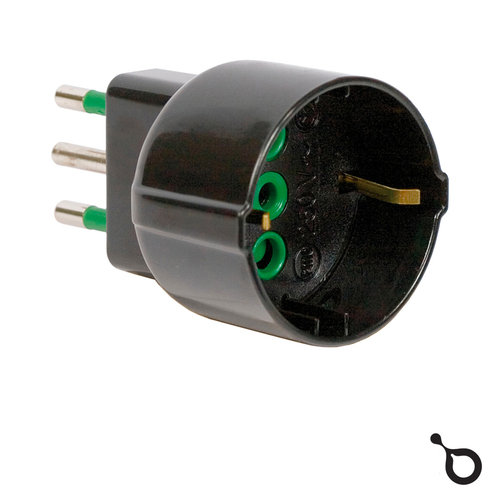 Adattatore semplice spina italiana 2P+T 10A presa italo/tedesca 2P+T 16A.