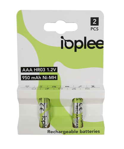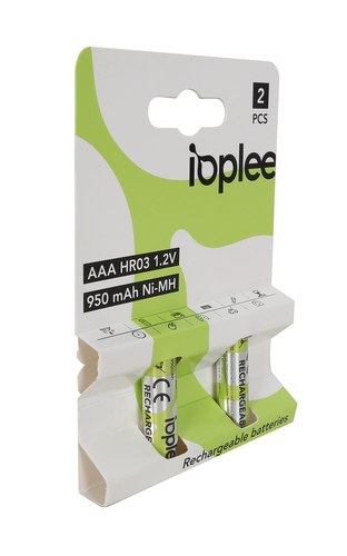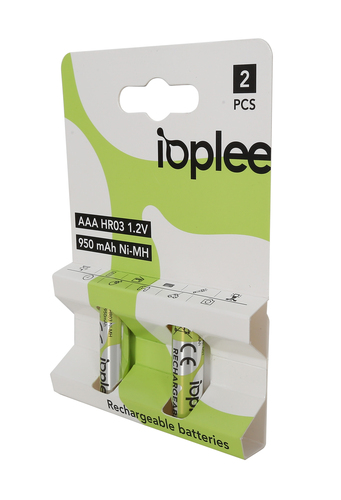 IOPLEE IAAAHR03, Batteria ricaricabile, Mini Stilo AAA, Nichel-Metallo Idruro (NiMH), 1,2 V, 2 pz, 950 mAh