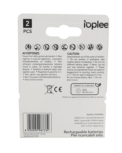 Image of IOPLEE IAAHR6 Confezione 2 pcs Batteria ricaricabile Stilo AA Nichel-Metallo Idruro (NiMH) 8050999987310