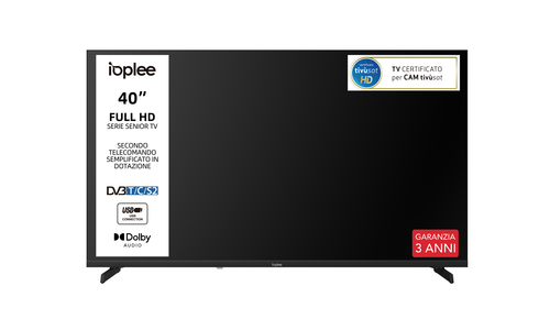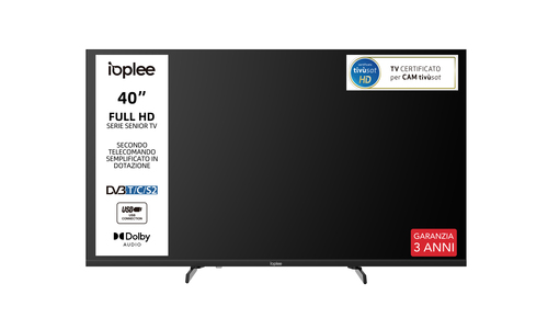 IOPLEE IOP40SEN TV Serie Senior, 40'' FULL HD, Triplo tuner DVBT2/C/S2, Certificato TivuSAT..