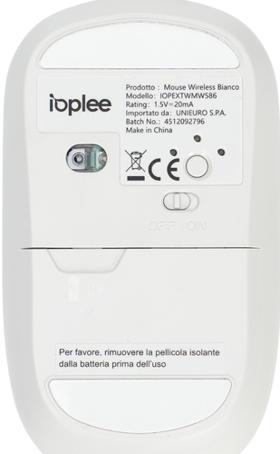 IOPLEE IOPEXTWMW586, Ambidestro, RF senza fili + Bluetooth, 1600 DPI, Bianco