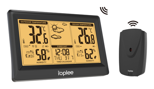 IOPLEE SIC637K, Nero, Igrometro da interno, Termometro da interno, Igrometro per esterno, Termometro da esterno, Barometro, Igrometro..