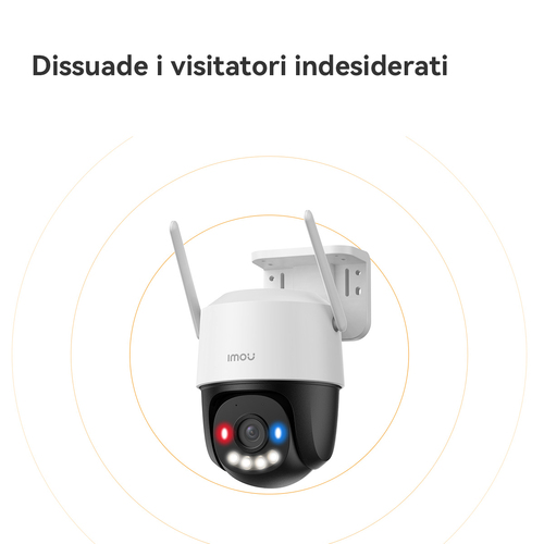 Cruiser SC è dotato di luci di avvertimento che emettono luce rossa e blu, in grado di proteggere la vostra casa dagli intrusi e di fungere da deterrente in caso di rilevamento di un intruso rispetto a un normale avviso a luce bianca.
