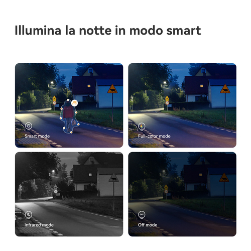 Cruiser SC cè in grado di regolare diverse modalità di visione notturna in base alle vostre esigenze, sia che vogliate che la visione notturna rimanga sempre a colori, sia che vogliate la visione a colori solo in caso di eventi per risparmiare energia.