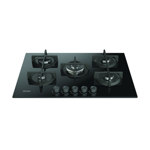 Lista Prezzi - Scheda del prodotto Indesit ING 72T/BK 1 piano gas vetro nero 75cm 5 fuochi bruciatore doppia corona griglie in ghisa lavabili in lavastoviglie