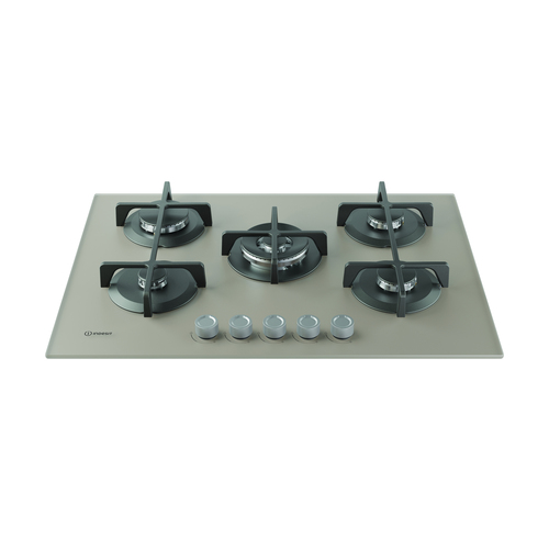 Image of        Indesit ING 72T/TD 1 piano gas vetro tortora 75cm 5 fuochi bruciatore doppia corona griglie in ghisa lavabili in lavastoviglie