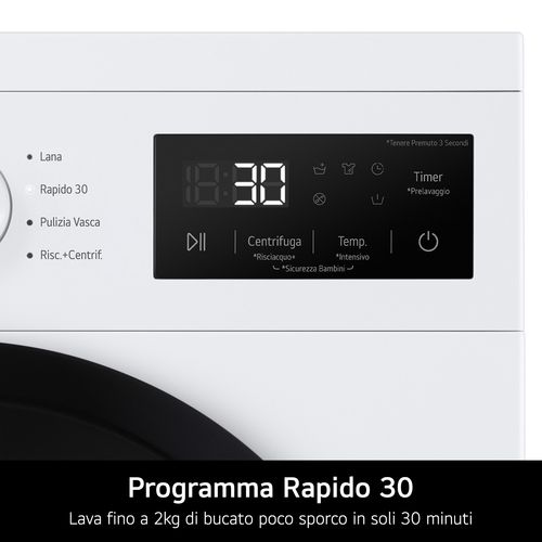 Questa lavatrice è particolarmente semplice e pratica da usare, perché il display è più grande e ha comandi ben visibili.