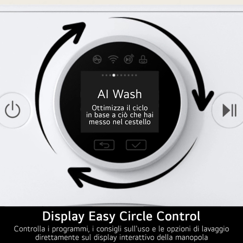 Abbiamo rinnovato completamente il modo usare la lavatrice! Con la nuova lavatrice LG AI DD i programmi vengono visualizzati sul display interattivo insieme a una rapida descrizione dei capi consigliati. Così anche se fare il bucato non è il tuo forte, sai subito qual è il programma migliore da utilizzare. Inoltre, sul display puoi controllare facilmente tutte le opzioni di lavaggio e leggere eventuali messaggi di errore in maniera più chiara e intuitiva.