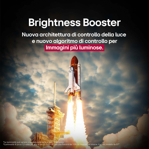Il Brighter Booster Ultimate aumenta la luminosità dello schermo fino fino a tre volte rispetto a uno schermo LG OLED tradizionale. Queste prestazione incredibili sono rese possibili dalla tecnologia innovativa di LG, che ottimizza la gestione della luce per garantire immagini più brillanti, vivaci e nitide, anche in ambienti luminosi. Grazie a questa tecnologia avanzata, ogni dettaglio prende vita, offrendo un'esperienza visiva senza compromessi.