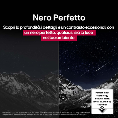 Avere un TV con il nero perfetto singifica goderti i tuoi contenuti con una profondità maggiore e un contrasto infinito. Da 12 anni LG è leader nei TV OLED, anni in cui ha accumulato un'esperienza capace di darti una qualità delle immagini eccezionale. Grazie ai pixel autoilluminanti e al controllo preciso della luminosità, i contenuti su questo TV OLED godranno di dettagli incredibili indipendentemente dall'illuminazione ambientale.
