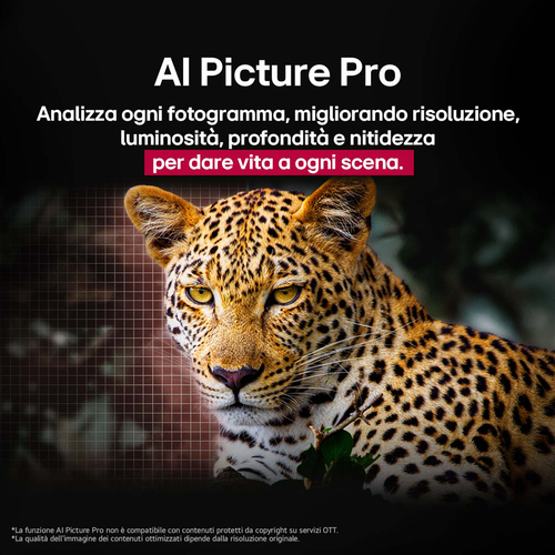 Il nuovo processore α11 gen2 con AI offre un'esperienza visiva straordinaria con qualità d'immagine 4K, arricchita da dettagli ottimizzati tramite l'Intelligenza Artificiale, che analizza in tempo reale ogni scena per esaltare la nitidezza e la profondità. Inoltre, grazie alla potenza del processore α11 gen2 con AI, il suono diventa altrettanto coinvolgente, garantendo un audio surround immersivo che completa perfettamente la visione, portando il tuo intrattenimento a un livello superiore.