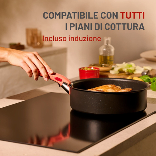 Manico rimovibile Ingenio: compatibile con tutti i corpi pentola della linea Ingenio, dotato di ben 3 brevetti e resistente fino a 10Kg. Ingenio è adatto per preparazioni dal piano cottura, al forno, al frigo, è ideale per servire il cibo direttamente in tavola ed in più è salva spazio perchè perfettamente impilabile. Ingenio: multiuso, monomanico, salvaspazio!