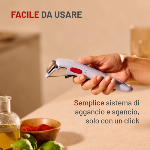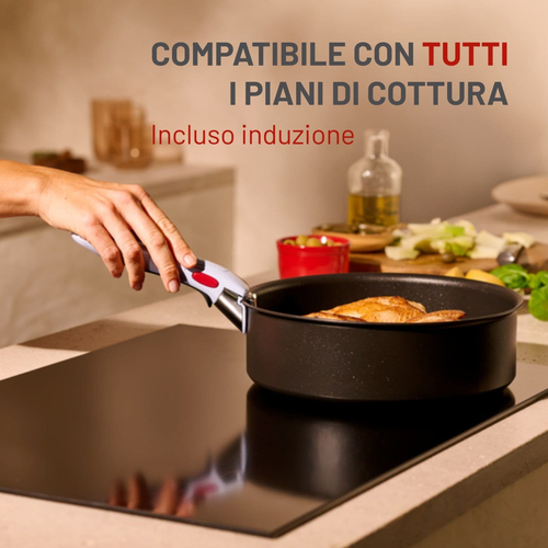 Manico rimovibile Ingenio: compatibile con tutti i corpi pentola della linea Ingenio, dotato di ben 3 brevetti e resistente fino a 10Kg. Ingenio è adatto per preparazioni dal piano cottura, al forno, al frigo, è ideale per servire il cibo direttamente in tavola ed in più è salva spazio perchè perfettamente impilabile. Ingenio: multiuso, monomanico, salvaspazio!