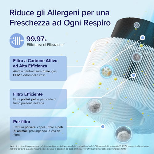 2. Filtro HEPA (blocca il 99,97% di particelle fino a 0,3 micron)