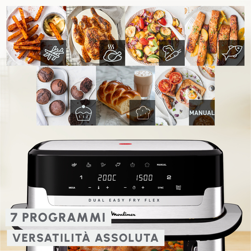 Lista Prezzi - Scheda del prodotto Moulinex Dual Easy Fry Flex Friggitrice ad Aria Flex, Divisore FlexCook, Fino a 9 L, EZ922DF0