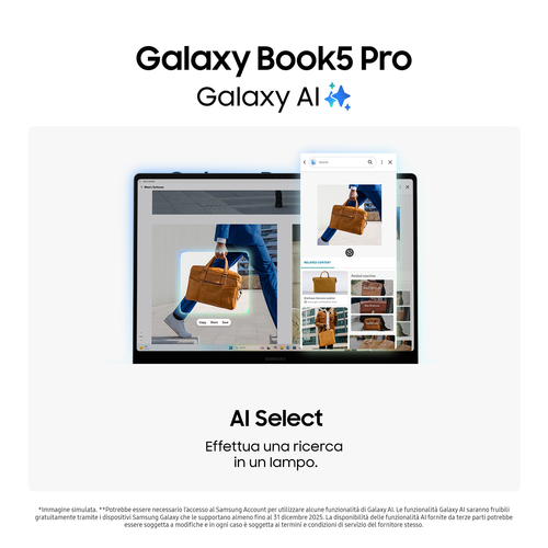 Scopri un nuovo livello di prestazioni AI su Galaxy Book5 Pro 14" con il velocissimo processore Intel® Core™ Ultra (serie 2), la grafica aggiornata e la NPU avanzata, in grado di offrire fino a 47 TOPS. Sfrutta tutta la sua potenza per affrontare carichi di lavoro pesanti, riprodurre modelli 3D complessi e completare facilmente attività AI ad alta intensità con una velocità incredibile.