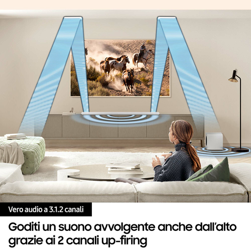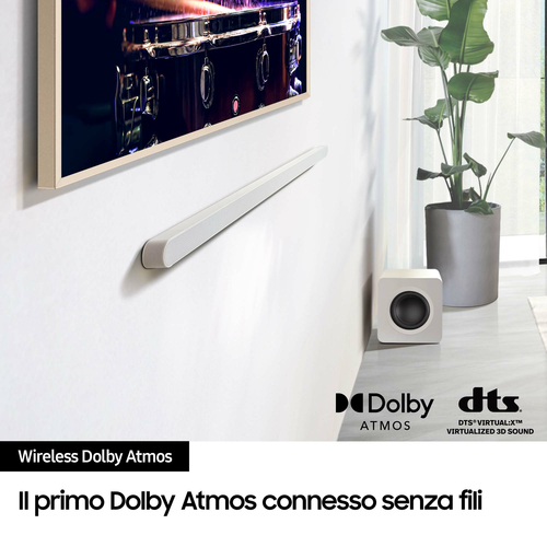 Goditi l’effetto sinergico creato dai contenuti audio 3D di Dolby Atmos e dalla soundbar – il tutto senza cavi