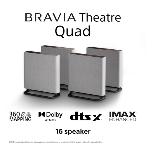 Ti presentiamo Sony Bravia Theatre Quad, con 360 Spatial Sound Mapping, Dolby Atmos, DTS:X e altro ancora: per un'esperienza cinematografica ed immersiva per tutti i tuoi contenuti!