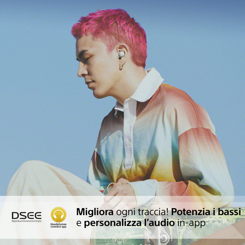 Le cuffie Sony WF-C700N True Wireless Noise Cancelling sono state progettate pensando al tuo comfort, con un design ergonomico della superficie che si adatta perfettamente all'orecchio per una vestibilità più stabile. La custodia tascabile rende più facile portare queste cuffie ovunque tu voglia andare, inoltre sono disponibili in diversi colori per adattarsi al tuo stile. Il nostro Noise Cancelling digitale ti consente di bloccare le distrazioni indesiderate o, se desideri rimanere più connesso con l'ambiente circostante, la modalità Ambient Sound lascia entrare le info importanti, come gli annunci sul traffico o sui trasporti. Il nostro Digital Sound Enhancement Engine (DSEE) migliora tutta la tua musica digitale avvicinandola alla qualità di registrazione originale, l'unità driver da 5 mm garantisce bassi potenti e una qualità vocale chiara e queste cuffie sono certificate 360 Reality Audio per un'esperienza musicale coinvolgente. Puoi anche personalizzare il tuo suono in Sony | App per la connessione delle cuffie. Conveniente per l'uso quotidiano, godrai di una lunga durata della batteria, ricarica rapida, resistenza all'acqua IPX4, funzioni intelligenti e facile controllo dei pulsanti. Con Multipoint Connection, puoi persino connettere due dispositivi Bluetooth contemporaneamente! Anche rispondere alle chiamate con queste cuffie wireless in-ear è facilissimo. Anche se sei all'aperto, sentirai e verrai ascoltato chiaramente, grazie all'accurata struttura di riduzione del rumore del vento.