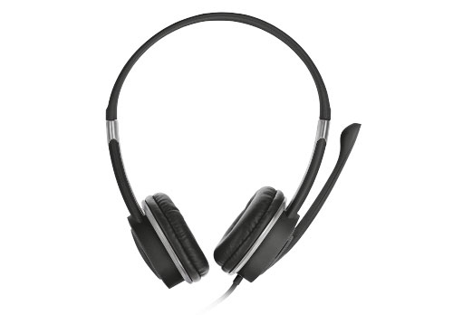 Cuffie di alta qualità dotate di microfono regolabile e tecnologia USB, per un suono cristallino di qualità digitale. Collegamento USB per comandi vocali chiari e privi di rumori di fondo durante le sessioni di chat o di gioco on-line. Design confortevole con archetto regolabile e soffici padiglioni auricolari. Telecomando integrato con controllo volume e tasto di disattivazione audio del microfono e delle cuffie. È sufficiente collegare il connettore a una porta USB del PC: nessuna necessità di scollegare gli altoparlanti. Microfono girevole: può essere allontanato durante l'ascolto della musica. Ideale per Live Messenger, giochi on-line, musica, chat e applicazioni telefoniche come Skype.