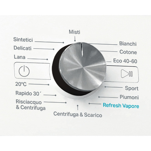 Freddo, Cotone 40 °C, Cotone 60 °C, Delicati/Seta, Piumino/piumone, Eco 40-60°C, Mix, Quick 30min, Risciacquo & centrifuga, Centrifuga/scarico, Sport, Vapore, Sintetico, Bianco, Lana